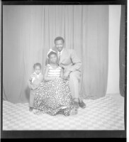 190. EAP449/2/22/190 Reference (shelfmark): EAP449/2/22/190 Title: Three people, a man wearing a suit and a woman wearing a dress sitting face-forward with a child standing face-forward beside them in the studio. Collection Area: Endangered Archives Programme Languages: Not applicable Date Range: 2nd half od the 20th century Extent: 1 TIFF image