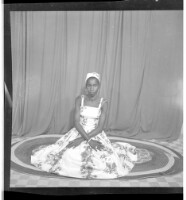 204. EAP449/2/22/204 Reference (shelfmark): EAP449/2/22/204 Title: A woman wearing a large dress sitting face-forward on the ground in the studio. Collection Area: Endangered Archives Programme Languages: Not applicable Date Range: 2nd half od the 20th century Extent: 1 TIFF image