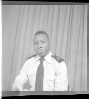 205. EAP449/2/22/205 Reference (shelfmark): EAP449/2/22/205 Title: A man wearing a military uniform sitting in profile in the studio. Collection Area: Endangered Archives Programme Languages: Not applicable Date Range: 2nd half od the 20th century Extent: 1 TIFF image