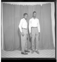 210. EAP449/2/22/210 Reference (shelfmark): EAP449/2/22/210 Title: Two men wearing shirts and pants standing in profile in the studio. Collection Area: Endangered Archives Programme Languages: Not applicable Date Range: 2nd half od the 20th century Extent: 1 TIFF image