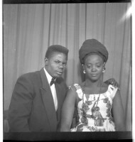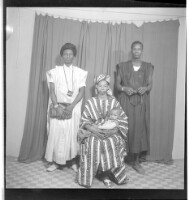 229. EAP449/2/22/229 Reference (shelfmark): EAP449/2/22/229 Title: Two men wearing boubous standing face-forward and a woman wearing a pagne sitting face-forward in front in the studio. Collection Area: Endangered Archives Programme Languages: Not applicable Date Range: 2nd half od the 20th century Extent: 1 TIFF image