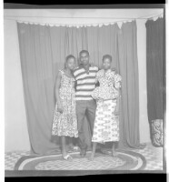 224. EAP449/2/22/224 Reference (shelfmark): EAP449/2/22/224 Title: Two women, one wearing a dress and the other wearing a pagne, both standing in profile and a man wearing a t-shirt standing face-forward in the middle in the studio. Collection Area: Endangered Archives Programme Languages: Not applicable Date Range: 2nd half od the 20th century Extent: 1 TIFF image