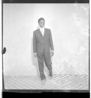 227. EAP449/2/22/227 Reference (shelfmark): EAP449/2/22/227 Title: A man wearing a suit, tie, and glasses standing face-forward in the studio. Collection Area: Endangered Archives Programme Languages: Not applicable Date Range: 2nd half od the 20th century Extent: 1 TIFF image