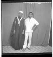230. EAP449/2/22/230 Reference (shelfmark): EAP449/2/22/230 Title: Two men, one wearing a large boubou and the other wearing a shirt and pants standing face-forward in the studio. Collection Area: Endangered Archives Programme Languages: Not applicable Date Range: 2nd half od the 20th century Extent: 1 TIFF image