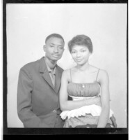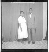 21. EAP449/2/22/21 Reference (shelfmark): EAP449/2/22/21 Title: A man wearing a shirt next to a woman wearing a dress, both standing in profile in the studio. Collection Area: Endangered Archives Programme Languages: Not applicable Date Range: 2nd half od the 20th century Extent: 1 TIFF image