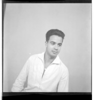 26. EAP449/2/22/26 Reference (shelfmark): EAP449/2/22/26 Title: A man wearing a shirt sitting in profile in the studio. Collection Area: Endangered Archives Programme Languages: Not applicable Date Range: 2nd half od the 20th century Extent: 1 TIFF image