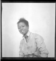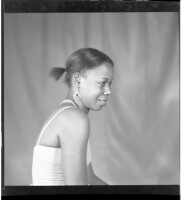 483. EAP449/2/22/483 Reference (shelfmark): EAP449/2/22/483 Title: A young girl sitting wearing a long sleeve shirt, a hairstyle, and earrings, facing sideways Collection Area: Endangered Archives Programme Languages: Not applicable Date Range: 2nd half od the 20th century Extent: 1 TIFF image