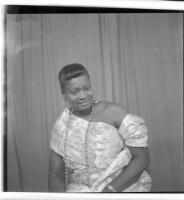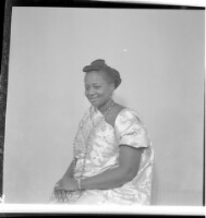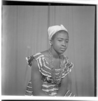 500. EAP449/2/22/500 Reference (shelfmark): EAP449/2/22/500 Title: Copy of a woman sitting, wearing a white boubou, a hairstyle, necklaces, and a smile, arms crossed and facing forward Collection Area: Endangered Archives Programme Languages: Not applicable Date Range: 2nd half od the 20th century Extent: 1 TIFF image