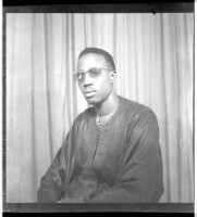 626. EAP449/2/22/626 Reference (shelfmark): EAP449/2/22/626 Title: A man sitting wearing a black boubou and glasses, facing sideways Collection Area: Endangered Archives Programme Languages: Not applicable Date Range: 2nd half od the 20th century Extent: 1 TIFF image