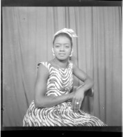 627. EAP449/2/22/627 Reference (shelfmark): EAP449/2/22/627 Title: A woman sitting, wearing a tussu dress and a headscarf, arms crossed and facing forward Collection Area: Endangered Archives Programme Languages: Not applicable Date Range: 2nd half od the 20th century Extent: 1 TIFF image