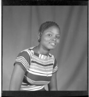 653. EAP449/2/22/653 Reference (shelfmark): EAP449/2/22/653 Title: A young girl sitting, wearing a black and white t-shirt, a hairstyle, a smile and a necklace, facing sideways Collection Area: Endangered Archives Programme Languages: Not applicable Date Range: 2nd half od the 20th century Extent: 1 TIFF image