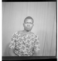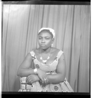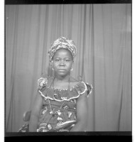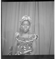 134. EAP449/2/23/134 Reference (shelfmark): EAP449/2/23/134 Title: A woman wearing a dress, head wrap, and necklace sitting face-forward in the studio. Collection Area: Endangered Archives Programme Languages: Not applicable Date Range: 2nd half od the 20th century Extent: 1 TIFF image