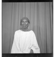 140. EAP449/2/23/140 Reference (shelfmark): EAP449/2/23/140 Title: An old woman wearing a large dress, a head wrap, and necklace sitting face-forward in the studio. Collection Area: Endangered Archives Programme Languages: Not applicable Date Range: 2nd half od the 20th century Extent: 1 TIFF image