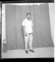 145. EAP449/2/23/145 Reference (shelfmark): EAP449/2/23/145 Title: A man wearing a shirt and pants standing in profile in the studio. Collection Area: Endangered Archives Programme Languages: Not applicable Date Range: 2nd half od the 20th century Extent: 1 TIFF image