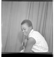 150. EAP449/2/23/150 Reference (shelfmark): EAP449/2/23/150 Title: A woman wearing a shirt and skirt sitting face-forward in the studio. Collection Area: Endangered Archives Programme Languages: Not applicable Date Range: 2nd half od the 20th century Extent: 1 TIFF image