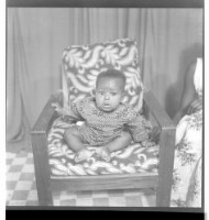 148. EAP449/2/23/148 Reference (shelfmark): EAP449/2/23/148 Title: A baby wearing a t-shirt sitting face-forward on a chair in the studio. Collection Area: Endangered Archives Programme Languages: Not applicable Date Range: 2nd half od the 20th century Extent: 1 TIFF image