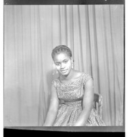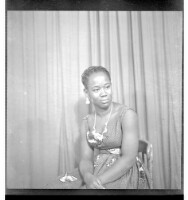 156. EAP449/2/23/156 Reference (shelfmark): EAP449/2/23/156 Title: A woman wearing a dress and necklace sitting in profile in the studio. Collection Area: Endangered Archives Programme Languages: Not applicable Date Range: 2nd half od the 20th century Extent: 1 TIFF image
