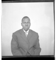 159. EAP449/2/23/159 Reference (shelfmark): EAP449/2/23/159 Title: A man wearing a boubou sitting face-forward in the studio. Collection Area: Endangered Archives Programme Languages: Not applicable Date Range: 2nd half od the 20th century Extent: 1 TIFF image