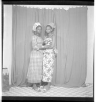 193. EAP449/2/23/193 Reference (shelfmark): EAP449/2/23/193 Title: Two women wearing dresses and head wraps holding each others' hands both standing in profile in the studio. Collection Area: Endangered Archives Programme Languages: Not applicable Date Range: 2nd half od the 20th century Extent: 1 TIFF image