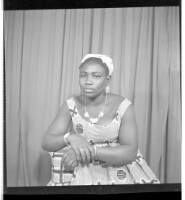 200. EAP449/2/23/200 Reference (shelfmark): EAP449/2/23/200 Title: A woman wearing a dress, head wrap, and necklace sitting in profile in the studio. Collection Area: Endangered Archives Programme Languages: Not applicable Date Range: 2nd half od the 20th century Extent: 1 TIFF image