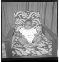195. EAP449/2/23/195 Reference (shelfmark): EAP449/2/23/195 Title: A little girl wearing a dress and shorts sitting face-forward on a chair in the studio. Collection Area: Endangered Archives Programme Languages: Not applicable Date Range: 2nd half od the 20th century Extent: 1 TIFF image