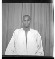 197. EAP449/2/23/197 Reference (shelfmark): EAP449/2/23/197 Title: A man wearing a boubou sitting face-forward in the studio. Collection Area: Endangered Archives Programme Languages: Not applicable Date Range: 2nd half od the 20th century Extent: 1 TIFF image