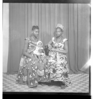 222. EAP449/2/23/222 Reference (shelfmark): EAP449/2/23/222 Title: Two women wearing dresses and necklaces, one wearing a head wrap and holding a baby on her lap, both sitting in profile in the studio. Collection Area: Endangered Archives Programme Languages: Not applicable Date Range: 2nd half od the 20th century Extent: 1 TIFF image