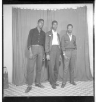 228. EAP449/2/23/228 Reference (shelfmark): EAP449/2/23/228 Title: Three men wearing shirts and pants all standing, one face-forward and two in profile in the studio. Collection Area: Endangered Archives Programme Languages: Not applicable Date Range: 2nd half od the 20th century Extent: 1 TIFF image