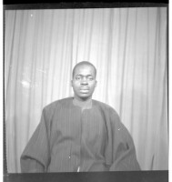281. EAP449/2/23/281 Reference (shelfmark): EAP449/2/23/281 Title: A man wearing a boubou sitting face-forward in the studio. Collection Area: Endangered Archives Programme Languages: Not applicable Date Range: 2nd half od the 20th century Extent: 1 TIFF image