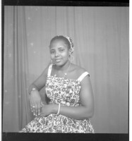 288. EAP449/2/23/288 Reference (shelfmark): EAP449/2/23/288 Title: A woman wearing a dress, head wrap, and necklace sitting in profile in the studio. Collection Area: Endangered Archives Programme Languages: Not applicable Date Range: 2nd half od the 20th century Extent: 1 TIFF image