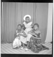 27. EAP449/2/23/27 Reference (shelfmark): EAP449/2/23/27 Title: Three girls wearing dresses, one also wearing a hat and necklace, all sitting in chairs, two in profile and one face-forward in the studio. Collection Area: Endangered Archives Programme Languages: Not applicable Date Range: 2nd half od the 20th century Extent: 1 TIFF image