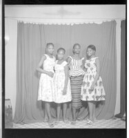 30. EAP449/2/23/30 Reference (shelfmark): EAP449/2/23/30 Title: Four girls wearing dresses standing, one face-forward and three in profile in the studio. Collection Area: Endangered Archives Programme Languages: Not applicable Date Range: 2nd half od the 20th century Extent: 1 TIFF image