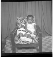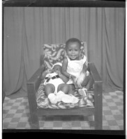 292. EAP449/2/23/292 Reference (shelfmark): EAP449/2/23/292 Title: Two children on chairs, one sitting face-forward and the other laying in profile in the studio. Collection Area: Endangered Archives Programme Languages: Not applicable Date Range: 2nd half od the 20th century Extent: 1 TIFF image