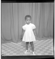 293. EAP449/2/23/293 Reference (shelfmark): EAP449/2/23/293 Title: A little girl wearing a dress standing in profile in the studio. Collection Area: Endangered Archives Programme Languages: Not applicable Date Range: 2nd half od the 20th century Extent: 1 TIFF image