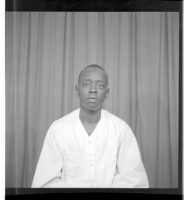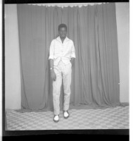295. EAP449/2/23/295 Reference (shelfmark): EAP449/2/23/295 Title: A man wearing a shirt and pants standing face-forward in the studio. Collection Area: Endangered Archives Programme Languages: Not applicable Date Range: 2nd half od the 20th century Extent: 1 TIFF image