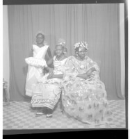 331. EAP449/2/23/331 Reference (shelfmark): EAP449/2/23/331 Title: Three women wearing dresses and head wraps, two also wearing necklaces and sitting in profile, and the third standing face-forward in the studio. Collection Area: Endangered Archives Programme Languages: Not applicable Date Range: 2nd half od the 20th century Extent: 1 TIFF image