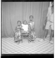 335. EAP449/2/23/335 Reference (shelfmark): EAP449/2/23/335 Title: Three little girls wearing dresses, one sitting face-forward and two standing in profile in the studio. Collection Area: Endangered Archives Programme Languages: Not applicable Date Range: 2nd half od the 20th century Extent: 1 TIFF image