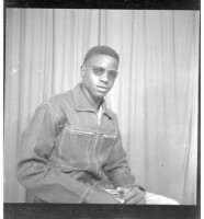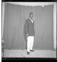 342. EAP449/2/23/342 Reference (shelfmark): EAP449/2/23/342 Title: A man wearing a jacket and pants standing in profile in the studio. Collection Area: Endangered Archives Programme Languages: Not applicable Date Range: 2nd half od the 20th century Extent: 1 TIFF image