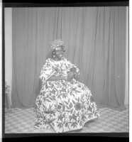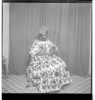 347. EAP449/2/23/347 Reference (shelfmark): EAP449/2/23/347 Title: A woman wearing a dress, head wrap, and necklace sitting in profile in the studio. Collection Area: Endangered Archives Programme Languages: Not applicable Date Range: 2nd half od the 20th century Extent: 1 TIFF image