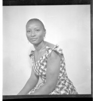 346. EAP449/2/23/346 Reference (shelfmark): EAP449/2/23/346 Title: A woman wearing a dress, head wrap, and necklace sitting in profile in the studio. Collection Area: Endangered Archives Programme Languages: Not applicable Date Range: 2nd half od the 20th century Extent: 1 TIFF image