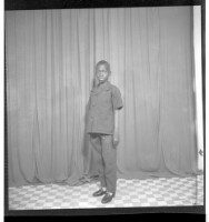 350. EAP449/2/23/350 Reference (shelfmark): EAP449/2/23/350 Title: A boy wearing a shirt and pants standing face-forward in the studio. Collection Area: Endangered Archives Programme Languages: Not applicable Date Range: 2nd half od the 20th century Extent: 1 TIFF image