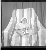354. EAP449/2/23/354 Reference (shelfmark): EAP449/2/23/354 Title: A baby wearing overalls, shorts, and a hat laying in profile in the studio. Collection Area: Endangered Archives Programme Languages: Not applicable Date Range: 2nd half od the 20th century Extent: 1 TIFF image