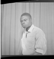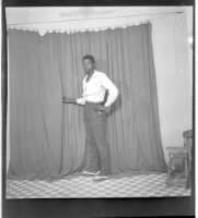 396. EAP449/2/23/396 Reference (shelfmark): EAP449/2/23/396 Title: Full portrait of a man standing, wearing a white shirt and black pants, facing sideways Collection Area: Endangered Archives Programme Languages: Not applicable Date Range: 2nd half od the 20th century Extent: 1 TIFF image