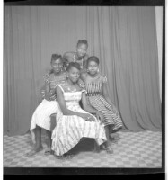 50. EAP449/2/23/50 Reference (shelfmark): EAP449/2/23/50 Title: Four girls wearing dresses, three of whom are sitting - two face-forward and one in profile - and one standing in profile in the studio. Collection Area: Endangered Archives Programme Languages: Not applicable Date Range: 2nd half od the 20th century Extent: 1 TIFF image