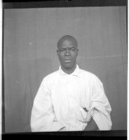 603. EAP449/2/23/603 Reference (shelfmark): EAP449/2/23/603 Title: A man wearing a white boubou sitting face-forward in the studio. Collection Area: Endangered Archives Programme Languages: Not applicable Date Range: 2nd half od the 20th century Extent: 1 TIFF image