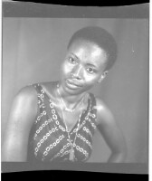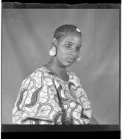 604. EAP449/2/23/604 Reference (shelfmark): EAP449/2/23/604 Title: A woman wearing a fabric boubou, large earrings, and a necklace sitting face-forward in the studio. Collection Area: Endangered Archives Programme Languages: Not applicable Date Range: 2nd half od the 20th century Extent: 1 TIFF image