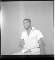 605. EAP449/2/23/605 Reference (shelfmark): EAP449/2/23/605 Title: A man wearing a short-sleeved shirt sitting face-forward in the studio. Collection Area: Endangered Archives Programme Languages: Not applicable Date Range: 2nd half od the 20th century Extent: 1 TIFF image