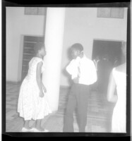 73. EAP449/2/24/73 Reference (shelfmark): EAP449/2/24/73 Title: A man wearing a shirt, pants, and tie facing a girl, both standing in profile near some people in a room. Collection Area: Endangered Archives Programme Languages: Not applicable Date Range: 2nd half od the 20th century Extent: 1 TIFF image