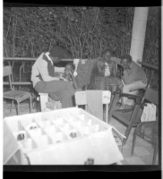 74. EAP449/2/24/74 Reference (shelfmark): EAP449/2/24/74 Title: Two men wearing shirts and pants sitting in profile near two girls wearing dresses of whom one is sitting face-forward and the other is sitting face-forward in a garden in front of some flowers. Collection Area: Endangered Archives Programme Languages: Not applicable Date Range: 2nd half od the 20th century Extent: 1 TIFF image