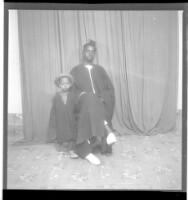 94. EAP449/2/25/94 Reference (shelfmark): EAP449/2/25/94 Title: A man wearing a boubou and hat sitting face-forward next to a little boy wearing a boubou and hat sitting face-forward in the studio. Collection Area: Endangered Archives Programme Languages: Not applicable Date Range: 2nd half od the 20th century Extent: 1 TIFF image